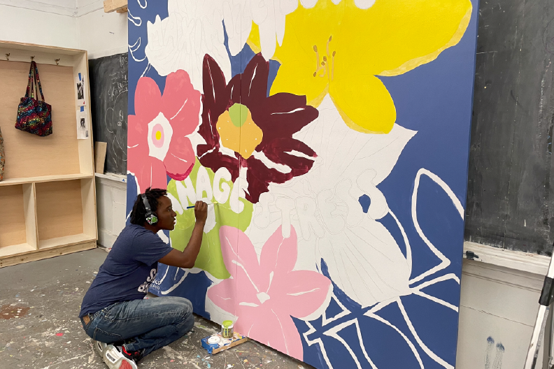 From there, youth in our Public Art Studio got to work painting the murals. Over the summer of 2024, the Public Art Studio spent 7 weeks painting these amazing pieces. The results are five, large-scale murals celebrating the five Basics Principles that are being installed across Woonsocket. Our hope is that the entirety of Woonsocket has the opportunity to engage with and learn more about The Basics and implement them into their families lives. Each mural also features a QR code that when scanned, will take them to a website to learn more about The Basics and other resources available to them and their families!